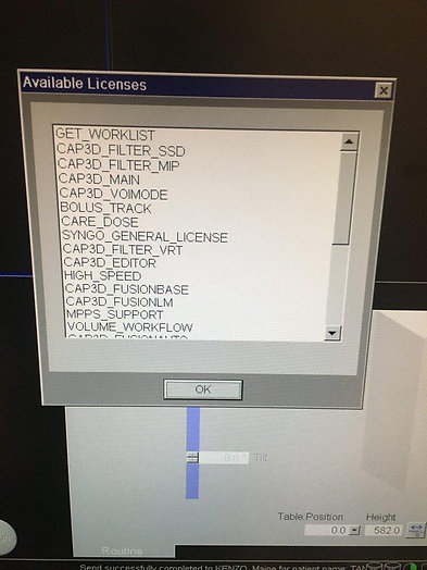 GET_WORKLIST, CAP3D_FILTER_SSD, CAP3D_FILTER_MIP, CAP3D_MAIN, CAP3D_VOIMODE, BOLUS_TRACK, CARE_DOSE, SYNGO_GENERAL_LICENSE, CAP3D_FILTER_VRT, CAP3D__EDITOR, HIGH_SPEED, CAP3D_FUSIONBASE, CAP3D_FUSIONLM, MPPS_SUPPORT, VOLUME_WORKFLOW, CAP3D_FUSIONAUTO, CARDIO_TURBO_RECON, ROUTINE_SPEED, SENSATION16, EXTENDED_FOV, PET_APPL, CTAPP_MAIN, NMG_CD_VIEWER, CTAPP_FILTER_VRT, CTAPP_FILTER_MIP, PET_HIREZ, MR_Support_i, CARDIAC_SPEED_04